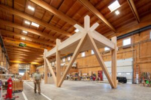 La madera estructural queda expuesta, convirtiéndose en parte del diseño estético del edificio.